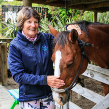 Sue’s horse riding history began from the age of about 5 or 6 on her first pony “Topsy”. Living in Kariotahi, riding there involved travelling across paddocks and down rural roads to the local Taurangaruru Pony Club in Waiuku where Sue competed in various ribbon days, gymkhanas as well as the Pukekohe A&P show, and One Day events. Successive ponies were “Topsy Turvy”, a 12.2hh pony who bucked like a bronco. Then came Duchess and finally Flirt, an ex polo pony.